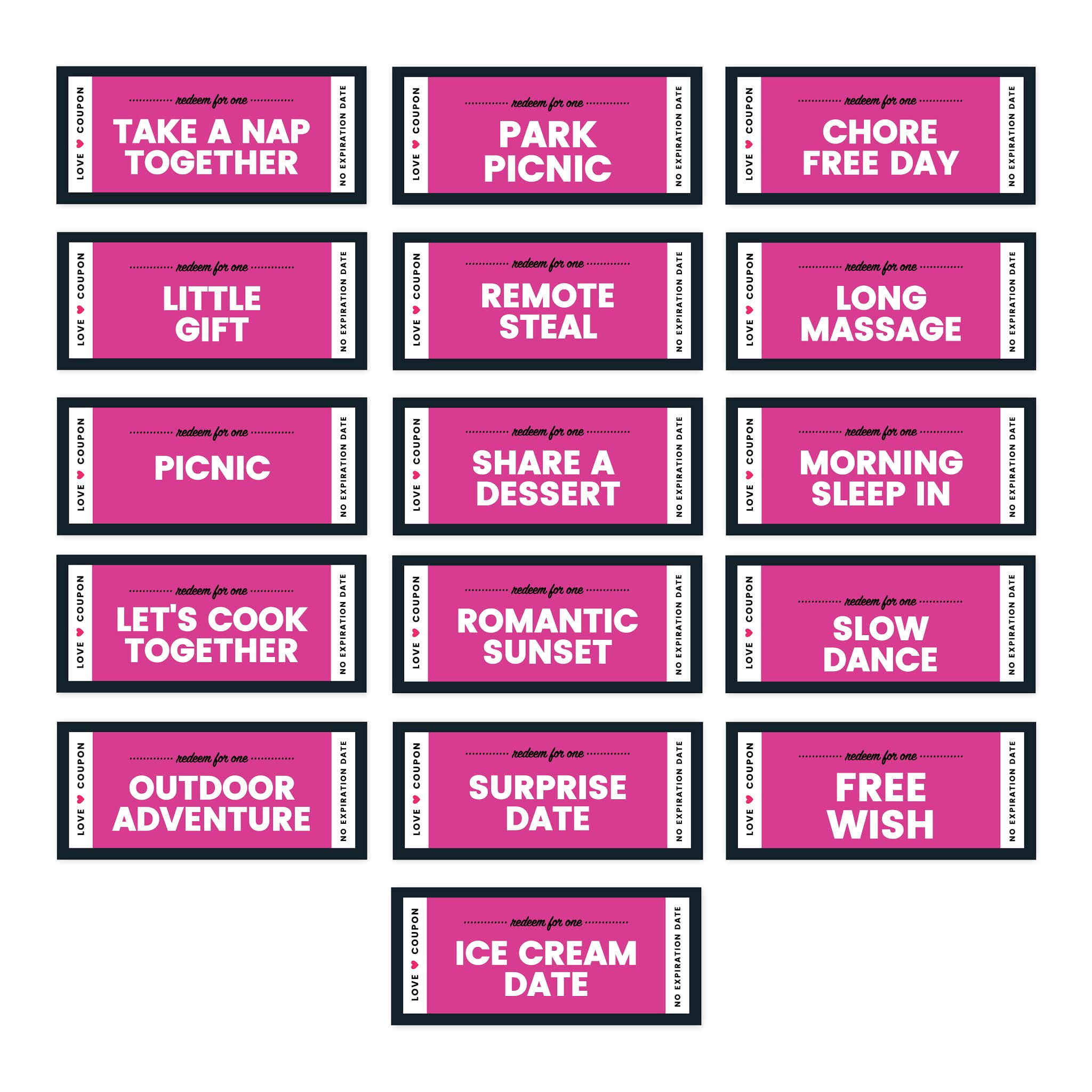 Andaz Press Red Bow Redeem For One Love Coupons for Him, Her, Boyfriend, Girlfriend, Romantic Valentines Day, 16-Pack